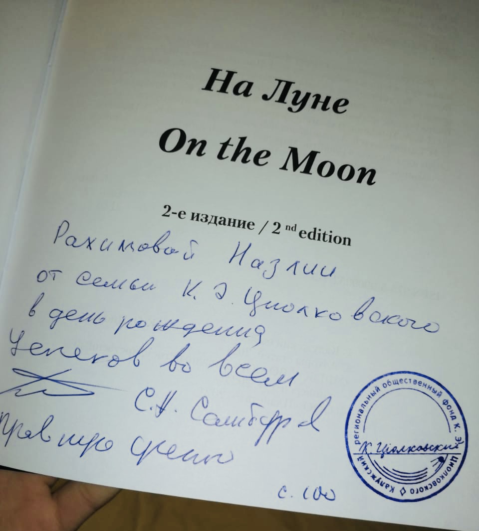 Спасибо большое организаторам за встречи с летчиком-испытателем У.Н. Султановым, имя которого носит Международная аэрокосмическая школа. Мне очень понравилось слушать лекцию Александра Борисовича Лынника, заслуженного деятеля искусств РБ, лётчика-инструктора, начальника Авиационного учебного центра, помощника председателя Федерации космонавтики России по РБ, он очень искусно играет на гитаре и поет, понятно и доступно объясняет сложный материал. Каменев Сергей Иванович рассказывал нам про двигатели самолетов. Урал Назибович Султанов рассказывал нам про проект «Буран», показывал, как надевать космический костюм «Форель» и еще много интересного. Сергей Самбуров, главный специалист РКК «Энергия» им. С.П. Королева, правнук К. Циолковского подарил мне свою книгу с автографом в честь моего дня рождения, такого подарка я еще не получала!
