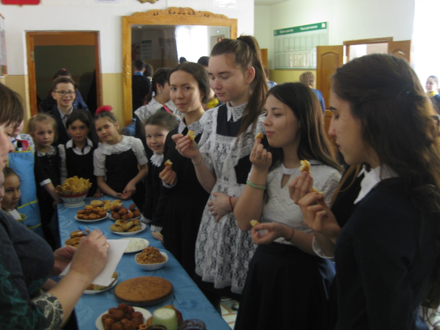 Фотографии членов комиссии в школьной столовой